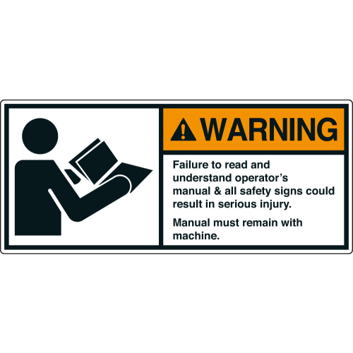 ANSI-Aufkleber: WARNING Failure to read and understand [...], UL-anerkannt, ANSI Z535-4, Folie selbstklebend, 80 mm x 35 mm, 2 St./Bogen