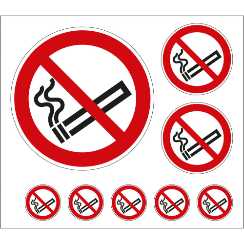 Aufkleber-Set: Rauchen verboten, ASR/ISO, Folie selbstklebend, 210 mm x 148 mm, 8 St./Bogen