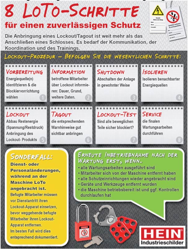 Dieses Whitepaper hilft Arbeitgebern und Sicherheitsbeauftragten dabei, einen Überblick über die wichtigsten Aspekte rund um das Thema Wartungssicherung zu erhalten. Lockout-Tagout sollte zu jedem ehrgeizigen Unfallvermeidungsprogramm gehören!