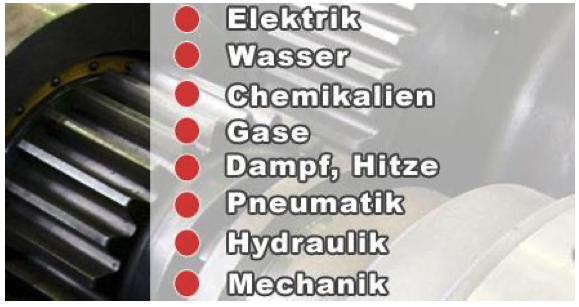Die folgenden Übersichten zeigen eine Auswahl möglicher Schutzvorrichtungen an Maschinen, elektrischen Anlagen und Ventilsystemen, die diese Anforderungen erfüllen.