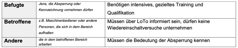 - Welche Schritte muss ein Wartungsmitarbeiter für den Lockout kennen?