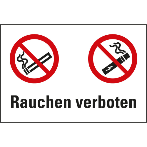 Kombi-Verbotsschild: E-Zigarette und Rauchen verboten, Piktogramm & Text, Folie selbstklebend, 300 mm x 200 mm, 1 Stück