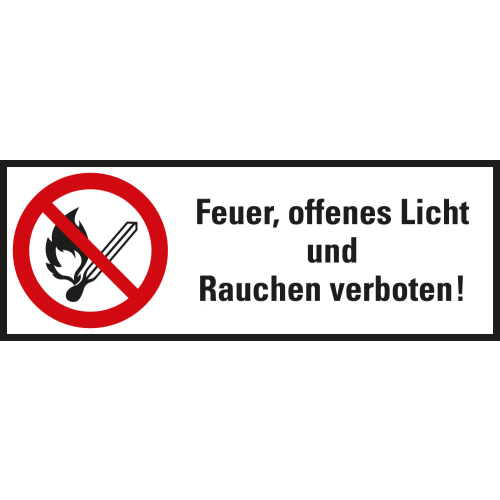 Kombi-Verbotsschild: Feuer, offenes Licht und Rauchen verboten!, Piktogramm & Text, Folie selbstklebend, 210 mm x 74 mm, 1 Stück