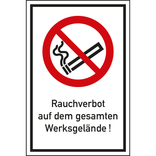 Kombi-Verbotsschild: Rauchverbot auf dem Werksgelände, Piktogramm & Text, ISO, Aluminium, 400 mm x 600 mm, 1 Stück