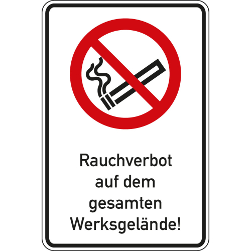 Kombi-Verbotsschild: Rauchverbot auf dem Werksgelände, Piktogramm & Text, ISO, Aluminium RA0, 600 mm x 900 mm, 1 Stück