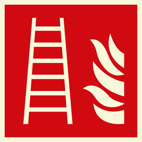 PERMALIGHT power Brandschutzschild: Feuerleiter, ASR/ISO, Kunststoff lang nachleuchtend, 200 mm x 200 mm, 1 Stück