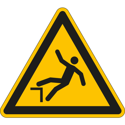 Warnschild / Warnzeichen: Warnung vor Absturzgefahr, Dreieck, gelb-schwarz, ASR/ISO, Folie selbstklebend, Schenkellänge 100 mm, 1 Stück