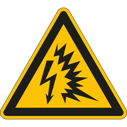 Warnschild / Warnzeichen: Warnung vor Lichtbogen, RoHS konform, ISO, Folie selbstklebend, Schenkellänge 50 mm, 10 St./Bogen