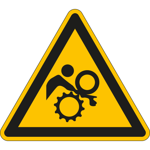 Warnung vor ungewollten Einzug, Dreieck, gelb-schwarz, UL-anerkannte Folie, Schenkellänge 100 mm, 1 Sstück